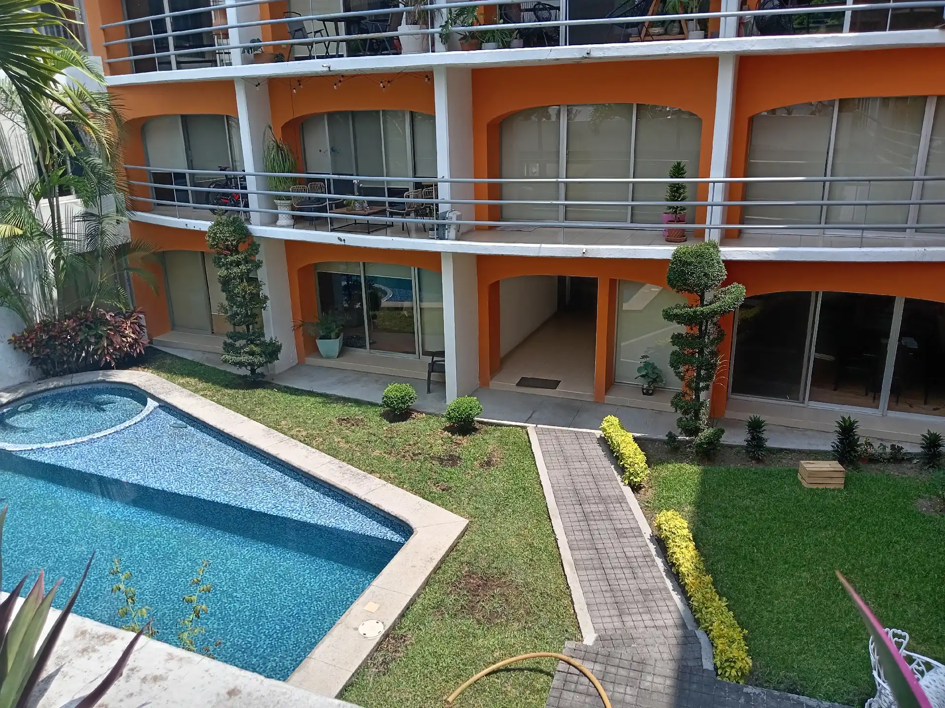 Departamento en planta baja con seguridad 24 horas, en zona norte de Cuernavaca Col. Maravillas. 138 mts con 2 Recámaras, la principal con baño y la otra es muy grande, se puede dividir y hacer una 3 era. recámara. Sala y comedor muy amplios con vista a la alberca, cocineta equipada, cuarto de lavado, estacionamiento para un auto. Excelente ubicación a solo 2 minutos de la autopista del Sol y de Avenidas principales, como Paseo del Conquistador....NO SE LO PIERDA!!!